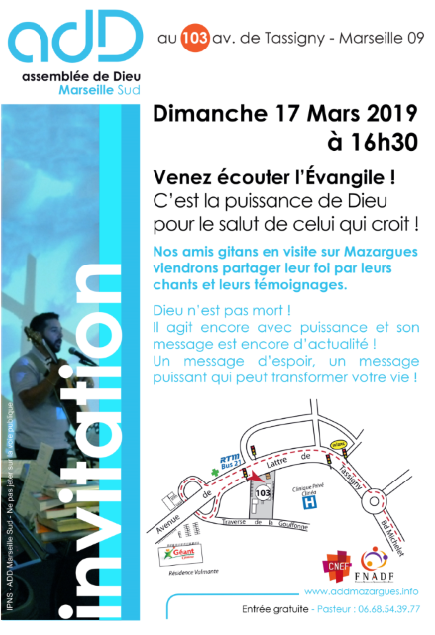 • Dimanche 16h : Prédication de l’Évangile (les 4 premiers dimanches du mois)